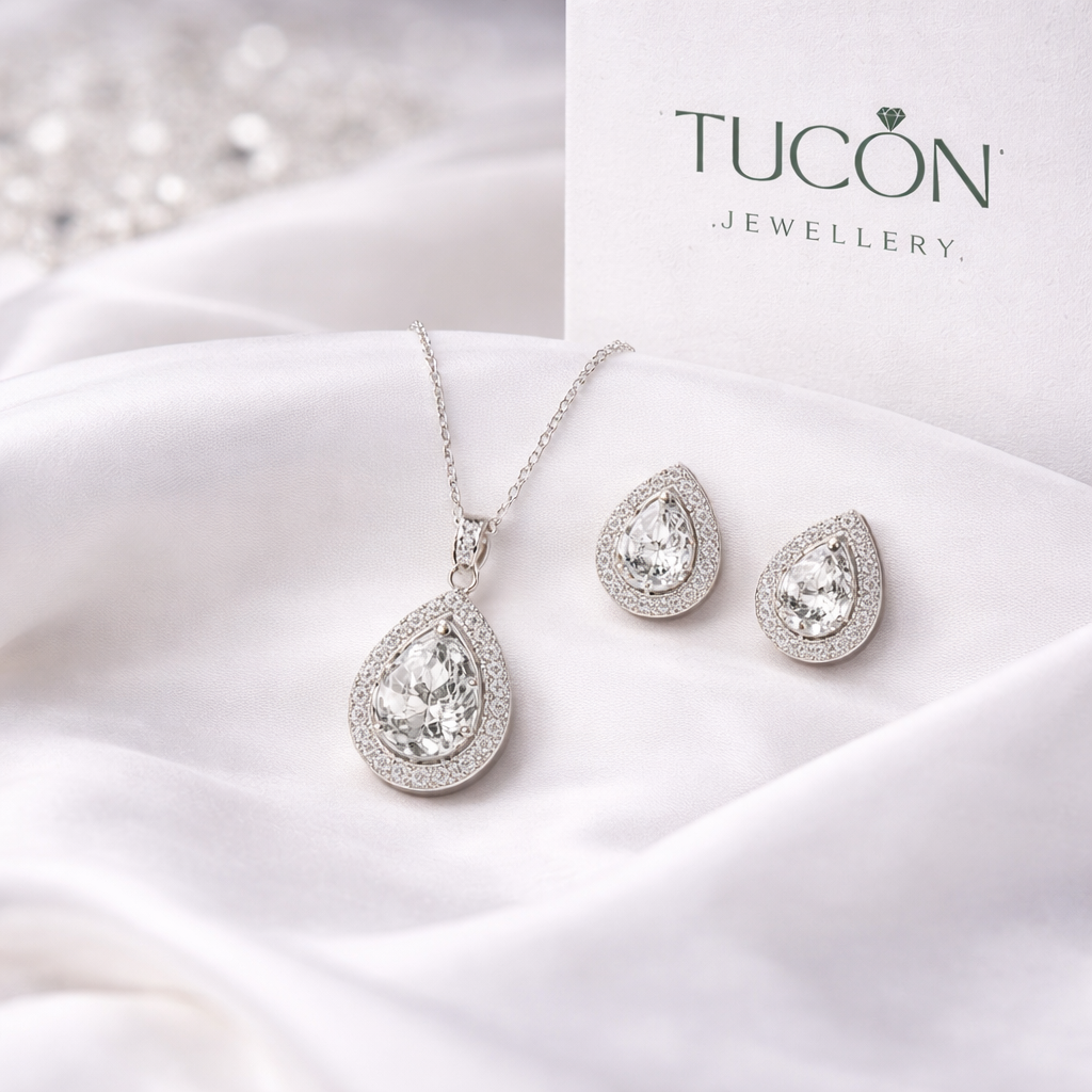 Set bijuterii Argint 925 TUCON | Clear Feelings – colier și cercei eleganți cu zirconii strălucitoare, pentru momentele în care ești sinceră cu ce simți